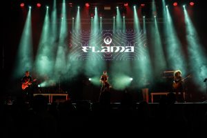Con un gran escenario y show audiovisual, la puesta en escena de Flama es de alto nivel. Se compone de 4 músicos, 2 vocalistas, Dj y Bailarinas de estilos Urbanos.
